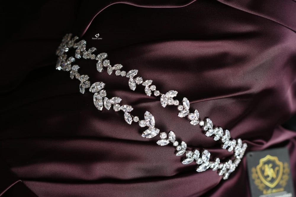 طوق هيدبيس من صفين من الزراكون طلاء روديوم