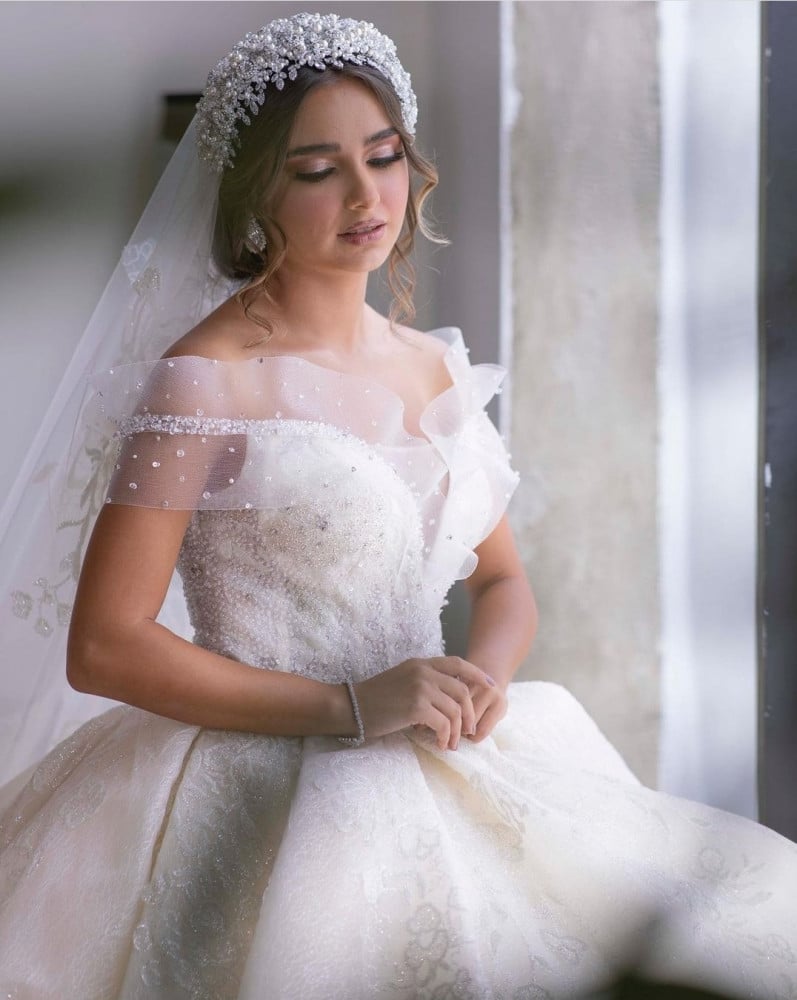 اكسسوار شعر هيدبيس مصنوع من الزركوان واللؤلؤ عالي الجودة يتميز بالمرونه يناسب كافة التسريحات.