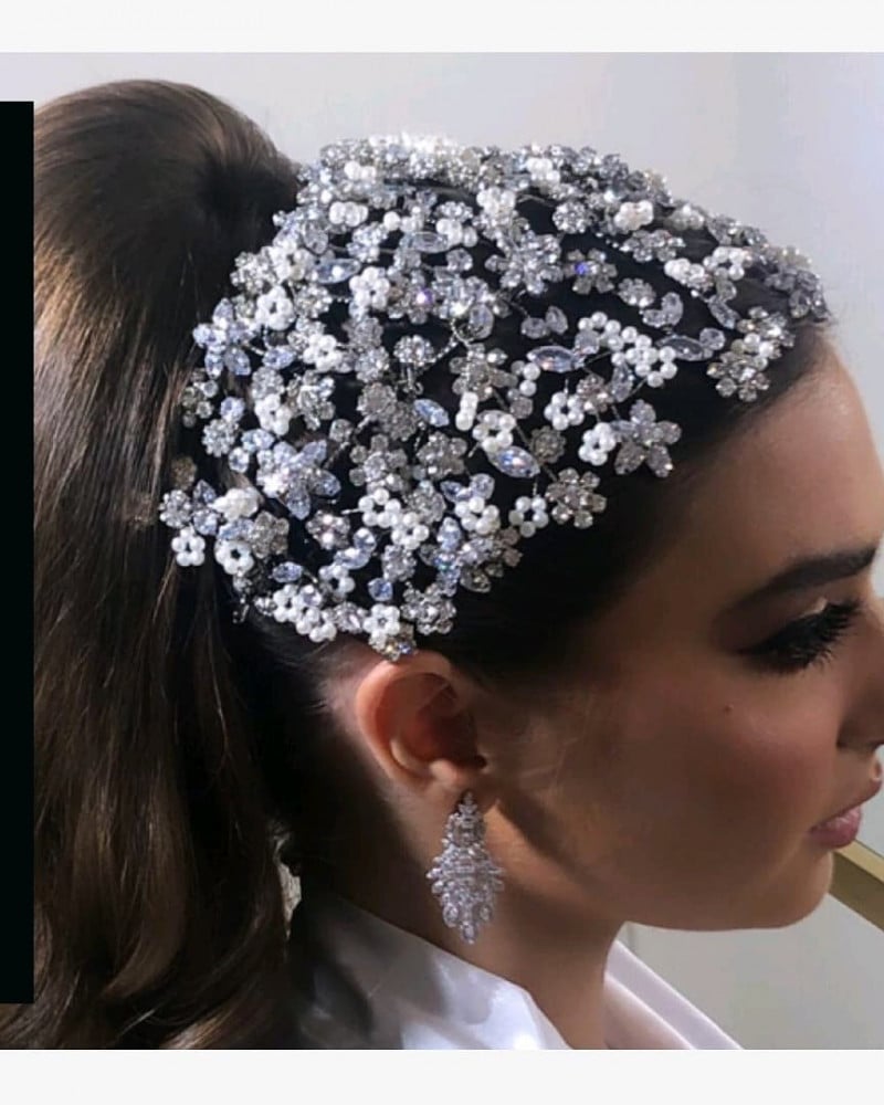 هيدبيس زراكوان كامل العرض 12الطول 30 مرصع بأحجار الزيركون المقارب جداً للالماس الطبيعي ومطعم بالولو